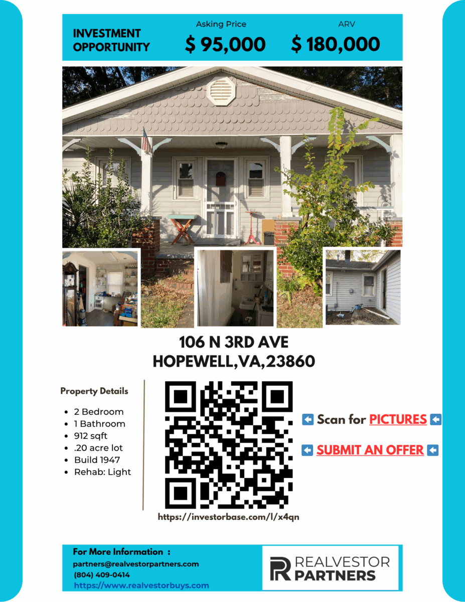 This 2 bed, 1.5 bath, 912 sq ft single-family home is a perfect opportunity for investors. Whether you’re looking for a flip or a rental, the numbers work! Located in a desirable area, the property requires only a light rehab to reach its full potential. Act fast—opportunities like this don’t last!